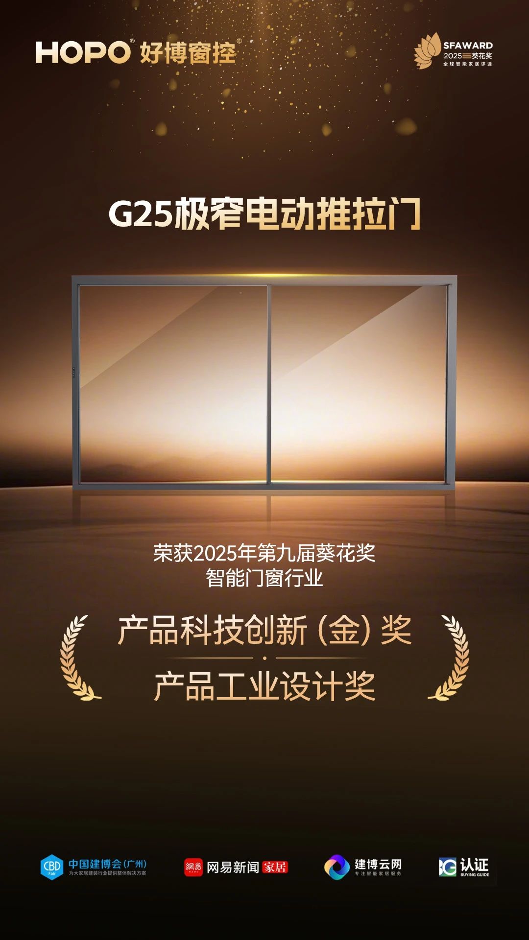 ·G25极窄电动推拉门-智能门窗行业产品科技创新(金)奖·G25极窄电动推拉门-智能门窗行业产品工业设计奖