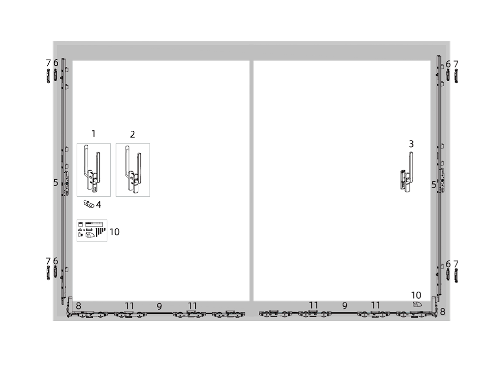| 把手组件 | 1 | 好博中国官方网站推拉双面把手组件 | LSHD706.00.012HPRO5 | 1 | 套 | 银色,可选黑色,带锁芯孔 |